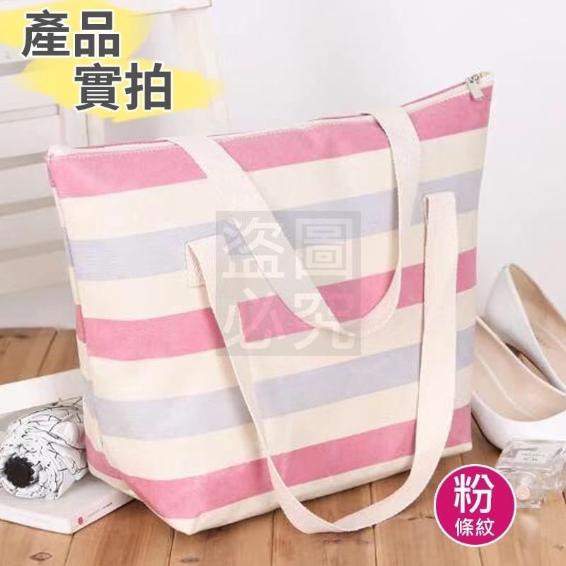 櫻花粉條紋肩背包
