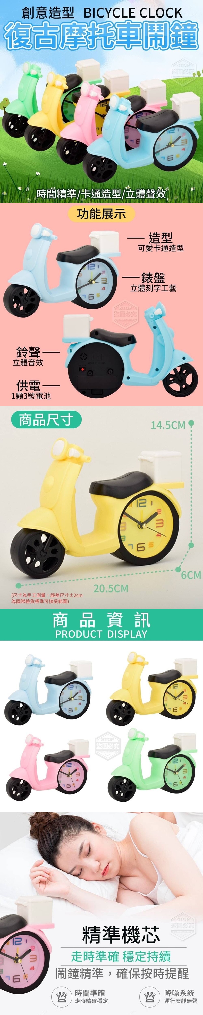 【商品尺寸】14.5*6*20.5cm (尺寸為手工測量,誤差尺寸±2cm 為國際驗貨標準可接受範圍) 【商品說明】- 你是否還在用手機當鬧鐘呢? 為了您及家人的健康,遠離輻射、低碳生活 滿滿復古味的超可愛摩托車造型 時尚居家及辦公生活的擺飾精品 可以提醒時間、也是質感擺飾 給家增添一道活力,小巧玲瓏 結實耐用表面光滑手感好 指針走時穩定、技術精良! ★簡約時尚 ★走時精準 ★創意擺設 每一秒都療癒 讓它成為居家的目光焦點 創造生活大質感