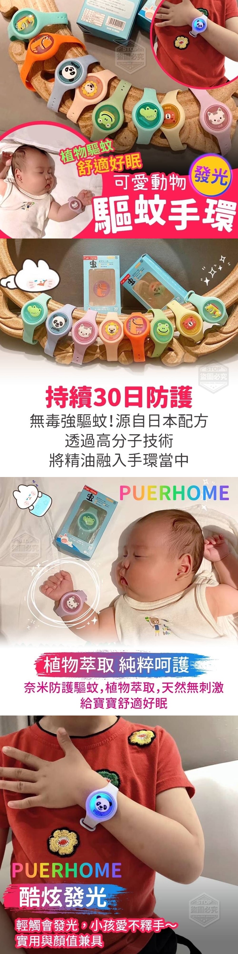 【商品說明】- 夏季蚊蟲出沒 在家或是帶孩子外出 總是被叮滿頭包,看得媽咪都心疼 夏天在外遊玩,總是怕孩子帶著腫包回家嗎? 現在就幫孩子戴上驅蚊手環 天然植物精油成分利用精油成分的 揮發來驅趕蚊蟲 讓孩子安心的跑跑跳跳,不怕蚊蟲叮咬 舒適好眠一整晚 天然精油、無殺蟲成分 效果可持續30日 吸睛酷炫的發光效果 適合嬰幼兒及全家人使用 適用於外出旅遊、寶寶睡眠、孩童上學等用途
