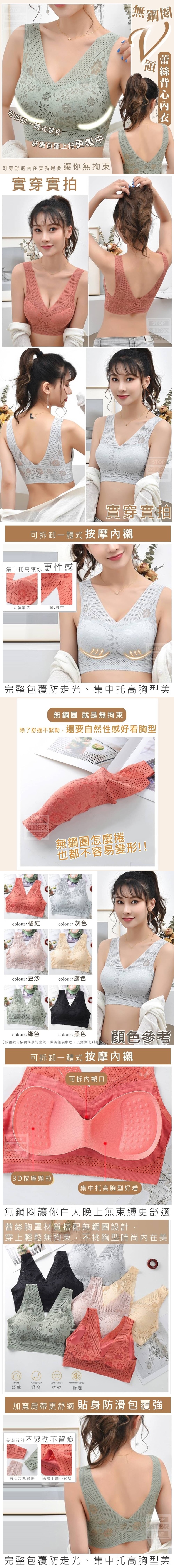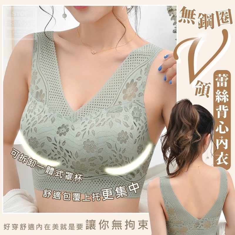 快快來解救女生的無鋼圈V領蕾絲背心內衣