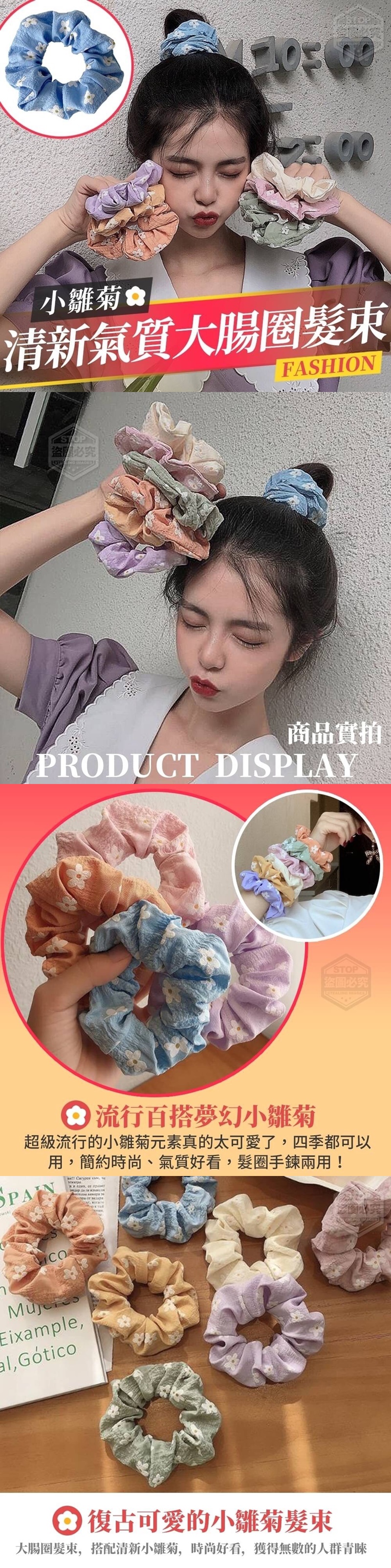 【商品說明】- 今年超火紅的小雛菊元素真 的太可愛了!大腸圈髮束, 搭配清新小雛菊,四季都可 以用,簡約時尚、氣質好看 ,髮圈手鍊兩用! 綁丸子頭、馬尾、公主頭都OK ,不易鬆、不咬髮、彈性強, 居家、辦公、休閒、戶外活動 、運動等時刻,都需要它幫你 牢牢抓住馬尾~一秒化身成森 林系女孩! ◆小雛菊元素 ◆髮圈手鍊兩用 ◆韓國簡約風