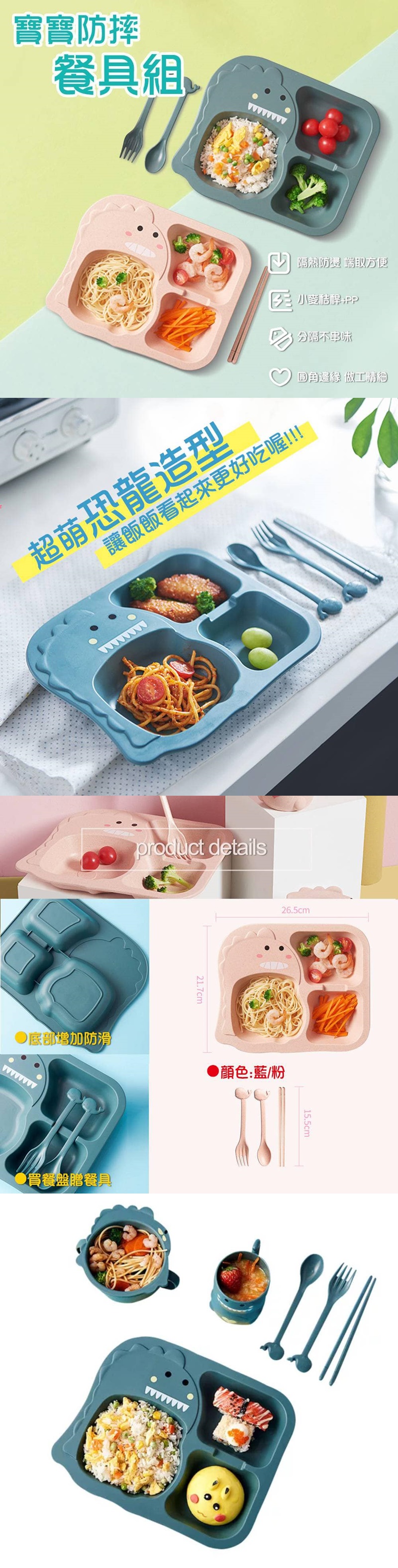 食品級 防摔兒童餐具6件組-隨機配色