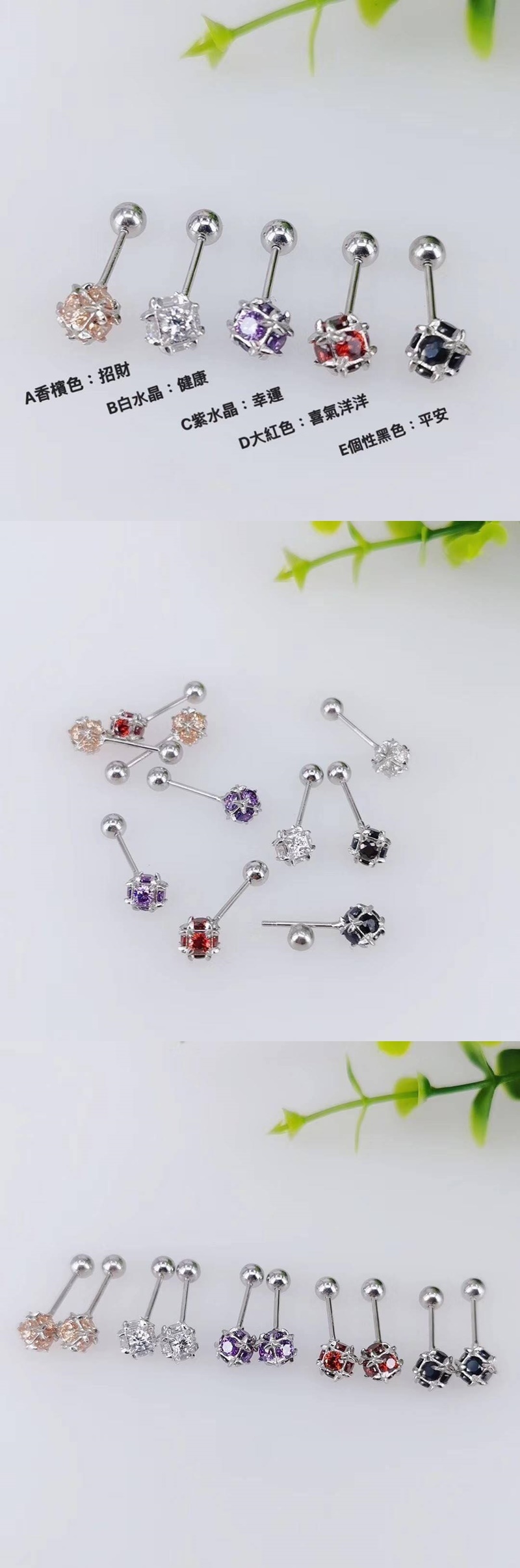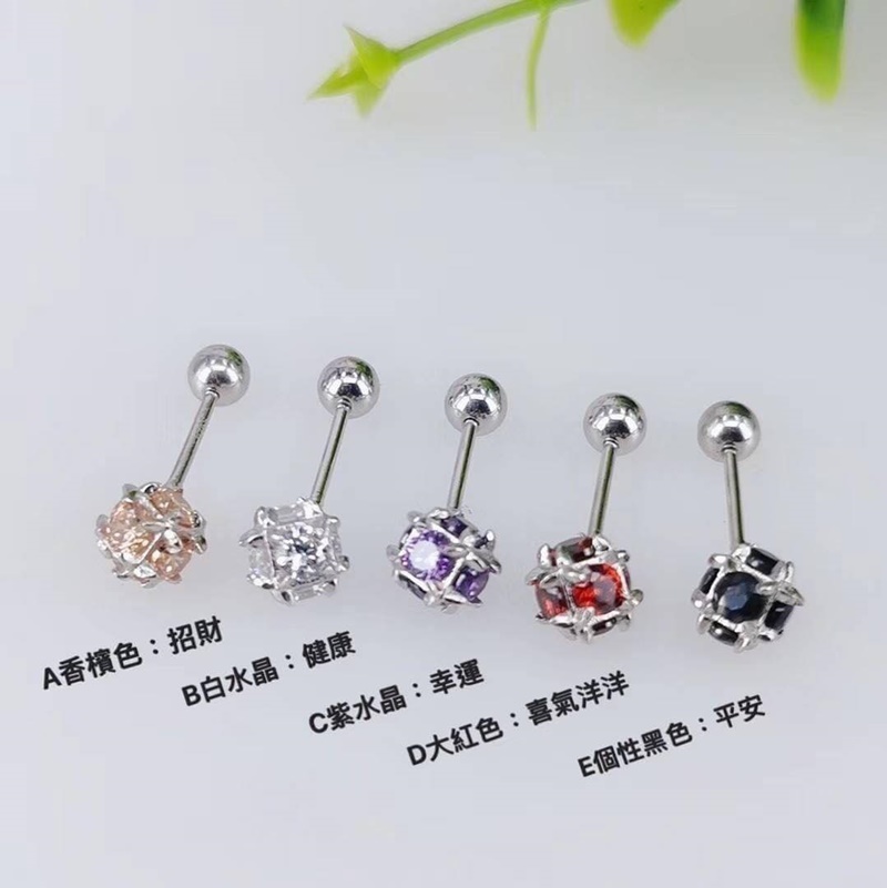 A香檳色:旺財 活力 B白水晶:健康 貴人 C紫水晶:幸運 招財 D大紅色:喜氣洋洋 E個性黑色:平安 香港雅新藝純銀店 多面方鑽擰螺絲光珠2戴式純銀耳環 時尚 大方 百搭 精緻 簡約