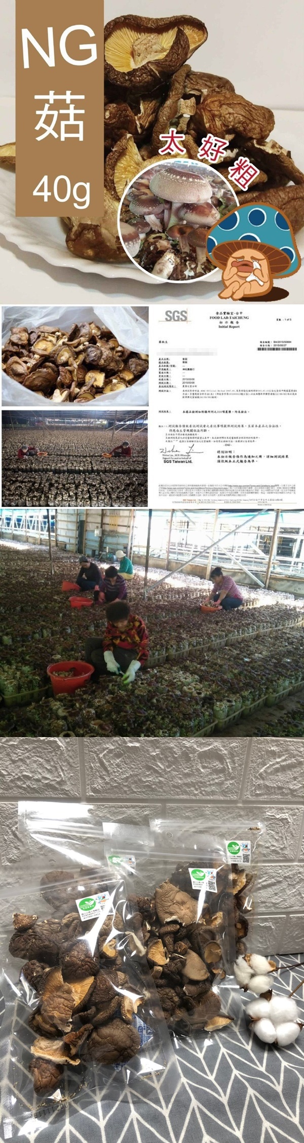 產銷履歷冬菇 所謂的NG菇,是指香菇本身有缺角, 賣相不佳,或是後期菇 實際上,他和正常菇一樣 Ms寶島魔神讓您吃的安心送的大心 #每包出貨都貼有"產銷履歷"標章 #保證無農藥、無重金屬 台灣新社優良認證香菇園