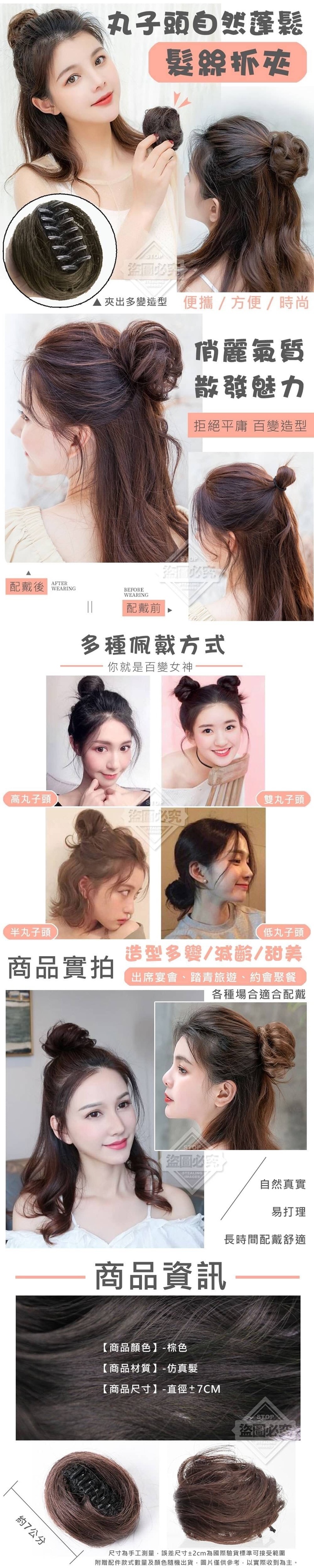 【商品顏色】-棕色 【商品材質】-仿真髮 【商品尺寸】-約7CM (尺寸為手工測量,誤差尺寸±2cm 為國際驗貨標準可接受範圍) (附贈配件款式數量及顏色隨機出貨, 圖片僅供參考,以實際收到為主。) 【商品說明】- 隱形無痕自然逼真! 便攜/方便/時尚 髮絲抓夾 增添整體造型 不必再費力扎丸子頭了 配戴後自然又真實 彰顯出女孩子可愛一面 造型多變/減齡/甜美 出席宴會、踏青旅遊、約會聚餐 都適合配戴、展現俏麗亮眼的氣質 配戴超牢固不散髮~