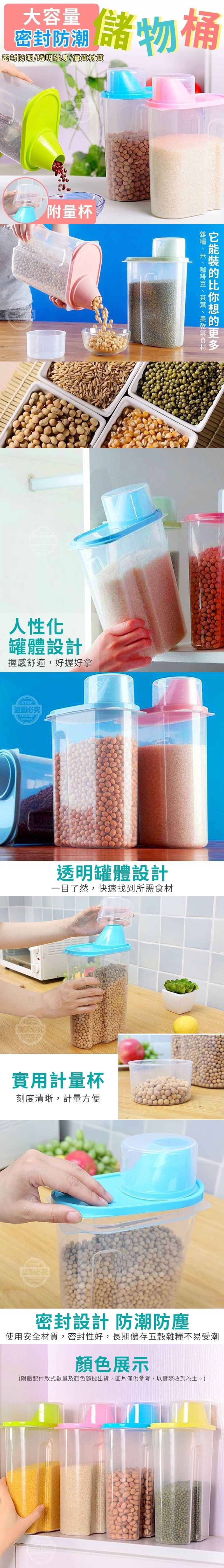 【商品說明】- 大容量密封防潮儲物桶 解決你五穀雜雜糧收納的煩惱~ 雜糧、米、咖啡豆、茶葉、果乾等食材都能裝 大容量空間,一次讓你裝很多 不止能裝五穀雜糧 也可當裝水的容器使用喔! 密封性良好不擔心食材受潮變質 導食物浪費的發生 透明桶身方便查看儲物剩餘量 隨桶附帶的量杯 刻度清晰,方便取量控制! 使用優質材質+人性化的罐體設計 讓你擁有舒適的握感,拿取非常容易 加密防漏,封住新鮮 是您收納的優質選擇喔!