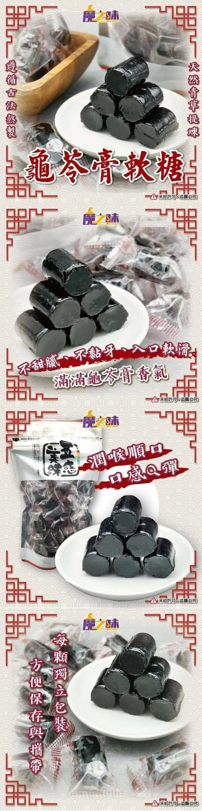 龜苓膏軟糖 規格:500g 遵循古法熬製的濃稠中藥材, 加上麥芽糖甘醇的甜味,以洋菜入膏, 製成香淳Q彈的軟糖 不甜膩、不黏牙, 入口軟滑的全新口感細細嚼一下 就能感受到彈牙驚喜, 讓你自在徜徉在清新的龜苓膏香氣中。 Q彈~Q彈~,好口味 不用擔心,絕對沒有中藥味