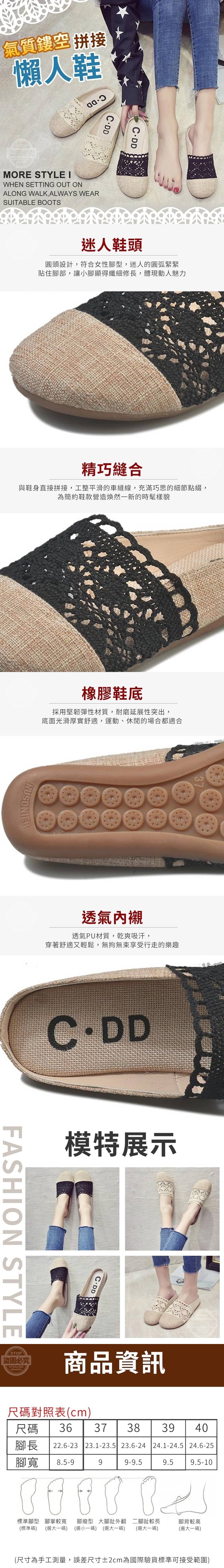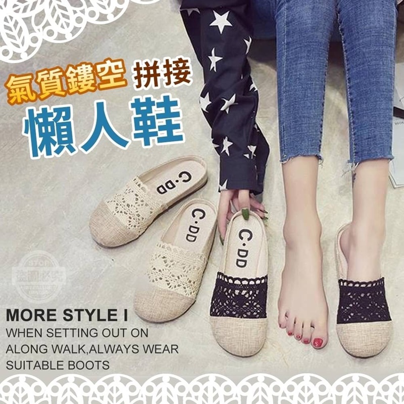 行走自如氣質鏤空拼接懶人鞋