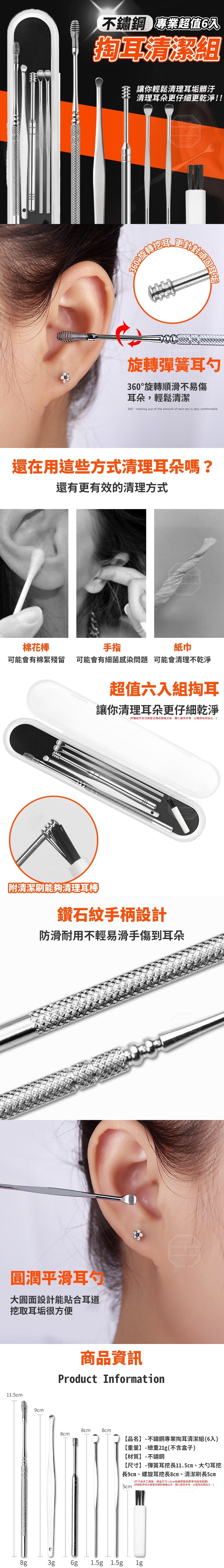 【商品尺寸】-彈簧耳挖長11.5cm、大勺耳挖長9cm、螺旋耳挖長8cm、耳挖長8cm、清潔刷長5cm