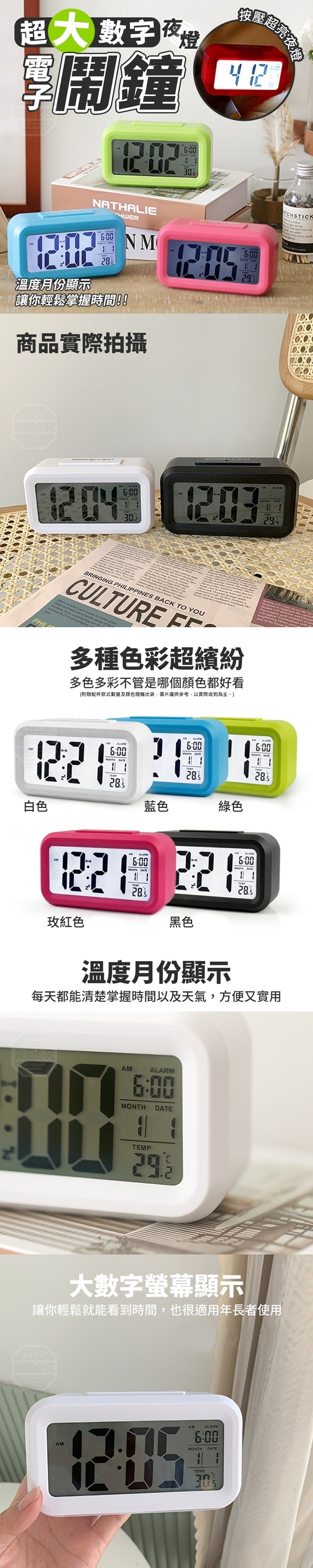 超大螢幕的電子夜燈鬧鐘