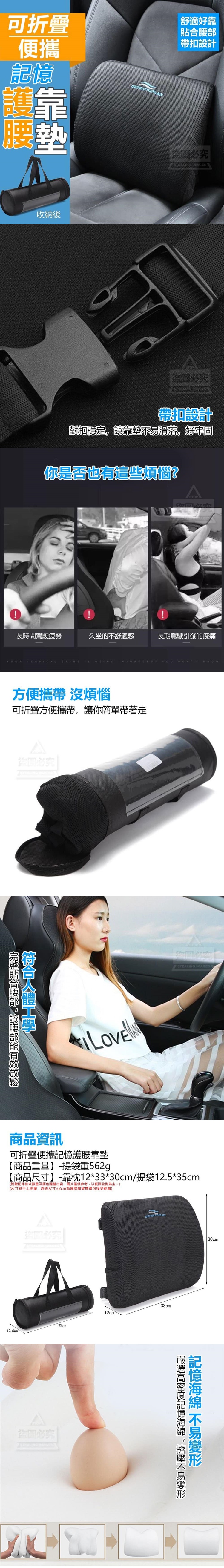 【商品重量】-提袋重562g【商品尺寸】-靠枕12*33*30cm/提袋12.5*35cm(尺寸為手工測量,誤差尺寸±2cm為國際驗貨標準可接受範圍)(附贈配件款式數量及顏色隨機出貨,圖片僅供參考,以實際收到為主。)【商品說明】-你是否也有這些煩惱?長時間駕駛疲勞/久坐的不舒適感/長期駕駛引發的痠痛記憶護腰靠墊幫你解決這些問題~符合人體工學完整貼合腰部,讓腰部能有效放鬆帶扣設計對扣穩定,讓靠墊不易滑落,好牢固記憶海綿 不易變形嚴選高密度記憶海綿,擠壓不易變形方便攜帶 沒煩惱可折疊方便攜帶,讓你簡單帶著走就讓可折疊便攜記憶護腰靠墊做你的靠山,溫柔呵護你的腰
