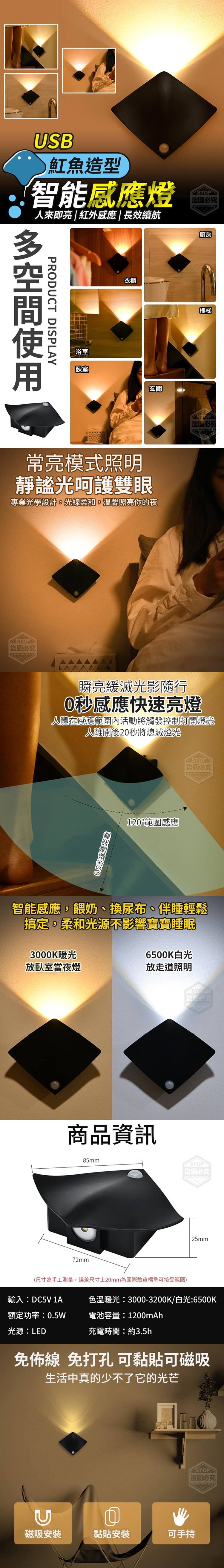 K USB魟魚造型智能感應燈 白 黃光2款 遇缺款隨機 【商品尺寸】-72*85*25mm (尺寸為手工測量,誤差尺寸±20mm為國際驗貨標準可接受範圍) 【商品說明】- USB魟魚造型智能感應燈 讓你的家更別具一格!也不畏停電! 智能感應,瞬亮緩滅光影隨行 0秒感應快速亮燈! 餵奶、換尿布、伴睡輕鬆搞定 柔和光源不影響寶寶睡眠~ 可黏貼可磁吸 免佈線免打孔更方便 常亮模式照明 專業光學設計,光線柔和,溫馨照亮你的夜 大容量鋰電池 內置1200毫安,續航更持久