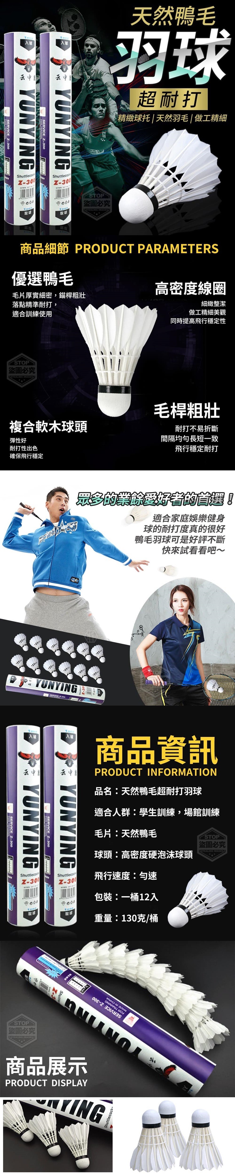 【商品說明】- 現在球友都愛用鴨毛羽球 卓越的飛行手感、穩定的耐打性能 用過可是就無法回頭囉!!! 優選鴨毛,毛片厚實細密 錨桿粗壯落點精準耐打 適合訓練使用,高密度線圈 細緻整潔做工精細美觀 同時提高飛行穩定性 採用高密度硬泡沫球頭 彈性好耐打性出色,毛桿粗壯 耐打不易折斷間隔均勻長短一致 眾多的業餘愛好者的首選! 適合家庭娛樂健身~ 球的耐打度真的很好<好評不斷> 快來試看看吧~期待您品鑑 ◎精緻球托 ◎天然羽毛 ◎做工精細