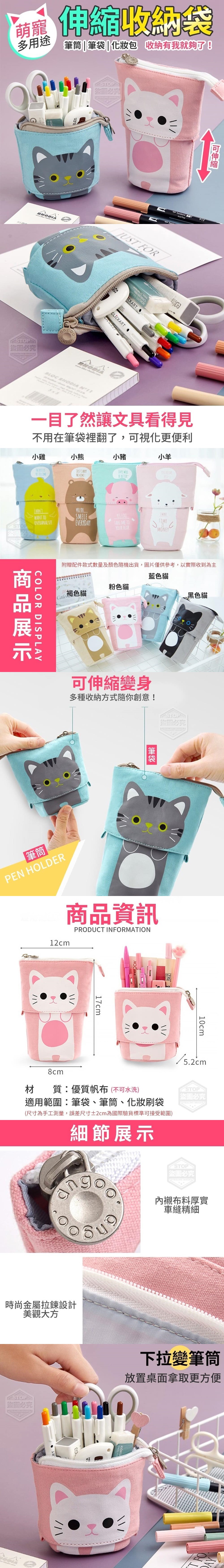 、褐色貓、粉色貓、藍色貓、黑色貓