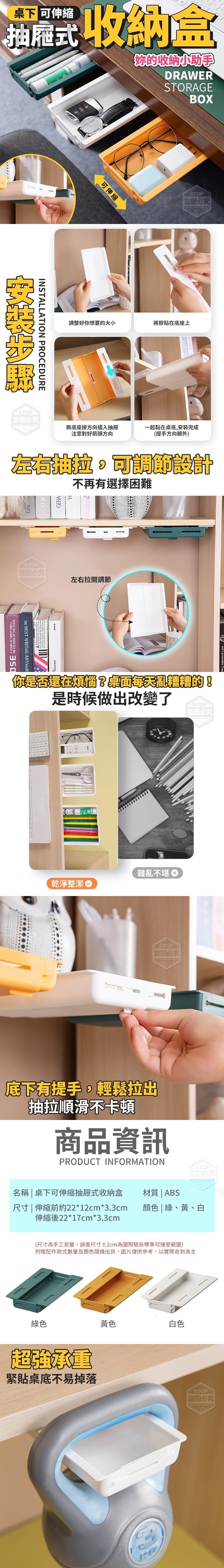 桌下可伸縮抽屜式收納盒,抽屜式抽拉