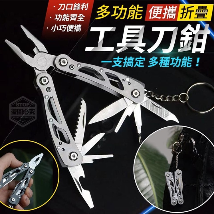 【商品顏色】黑色、銀色 (附贈配件款式數量及顏色隨機出貨, 圖片僅供參考,以實際收到為主。) 【商品說明】- 多功能便攜折疊工具刀鉗 同時擁有鋸齒、尖刮刀、開瓶器、 螺絲、銼刀、鉗子、一支搞定 多種功能! 出門無須負擔多種器材,生活更便利! 高硬度鉗頭 硬度更高、更牢固耐用, 輕鬆應付艱難任務 鑰匙圈孔設計 可掛在背包上,釋放雙手 握感舒適 操作更省力,不易傷手 >刀口鋒利 >功能齊全 >小巧便攜 影片僅供參考使用方式 所有配件以實際收到為主
