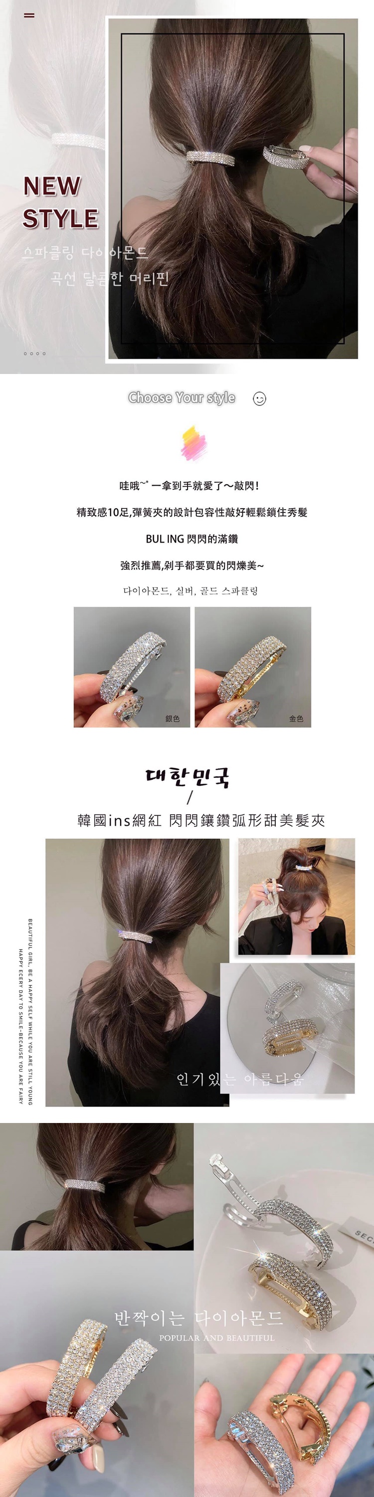 韓國同款-氣質水鑽馬尾夾 / 單入