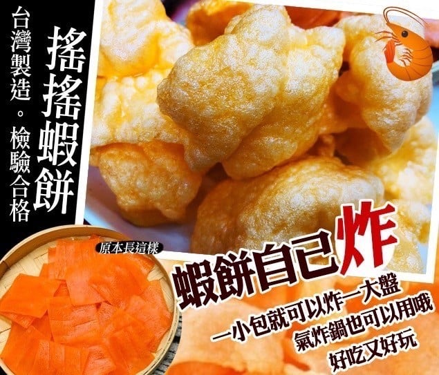 小小一片 可以變成這麼大片一片膨脹10倍有喔!!!一小包就可以炸成一大盤 好多啊!!古早的高檔的點心傳統的蝦餅是純台灣本土商品