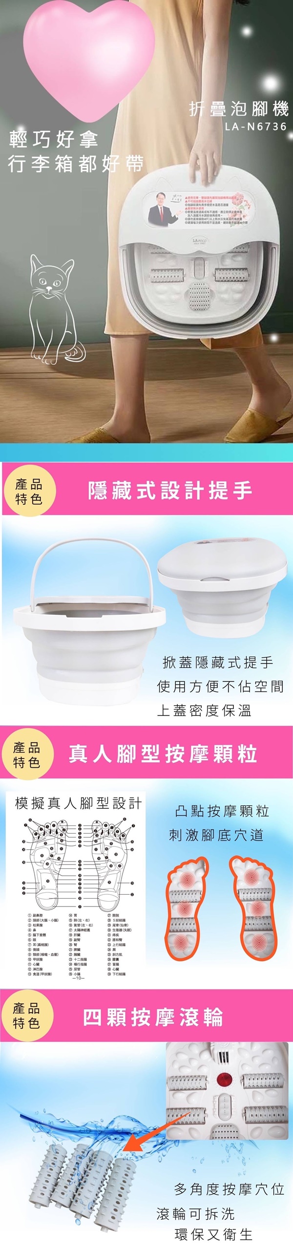 #居家自在放鬆 折疊收納不佔空間 恆溫加熱幫助循環 自在放鬆輕巧便捷 四顆按摩滾輪 多角度按摩穴位 滾輪可拆洗 #舒緩氣血不順#體貼你的雙腳 讓你從根本放鬆 材質:ABS+TPR 電壓:110V 加熱溫度:攝氏41-45度 額訂功率:500W 額訂功率:50Hz