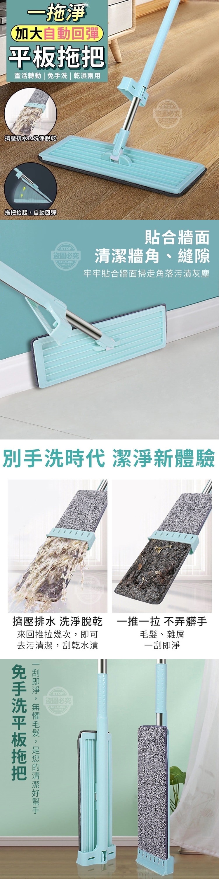 一拖淨自動回彈加大平板拖把