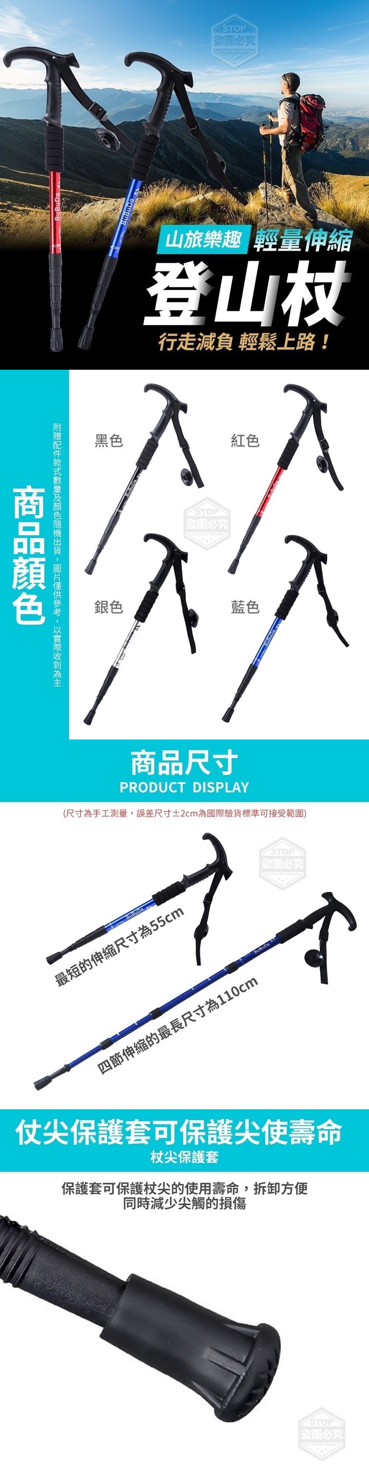 登山杖四節可自由伸縮