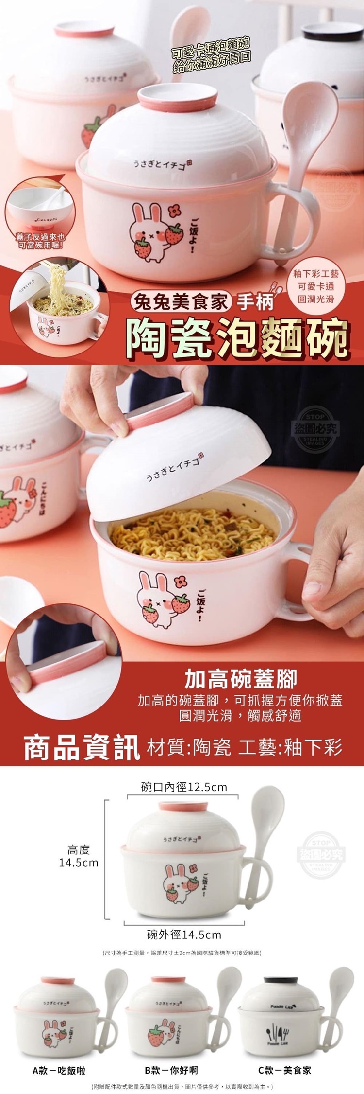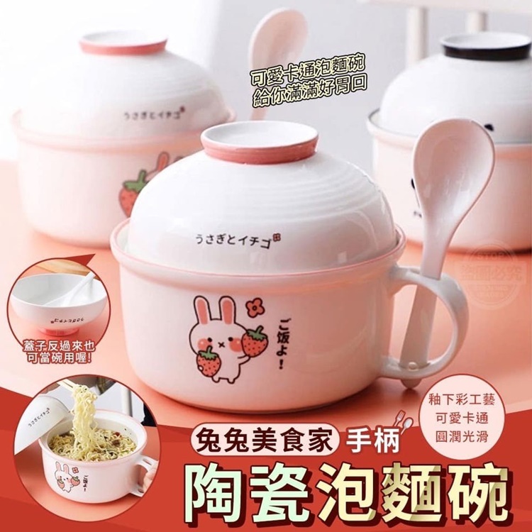 可愛的兔兔美食家手柄陶瓷泡麵碗