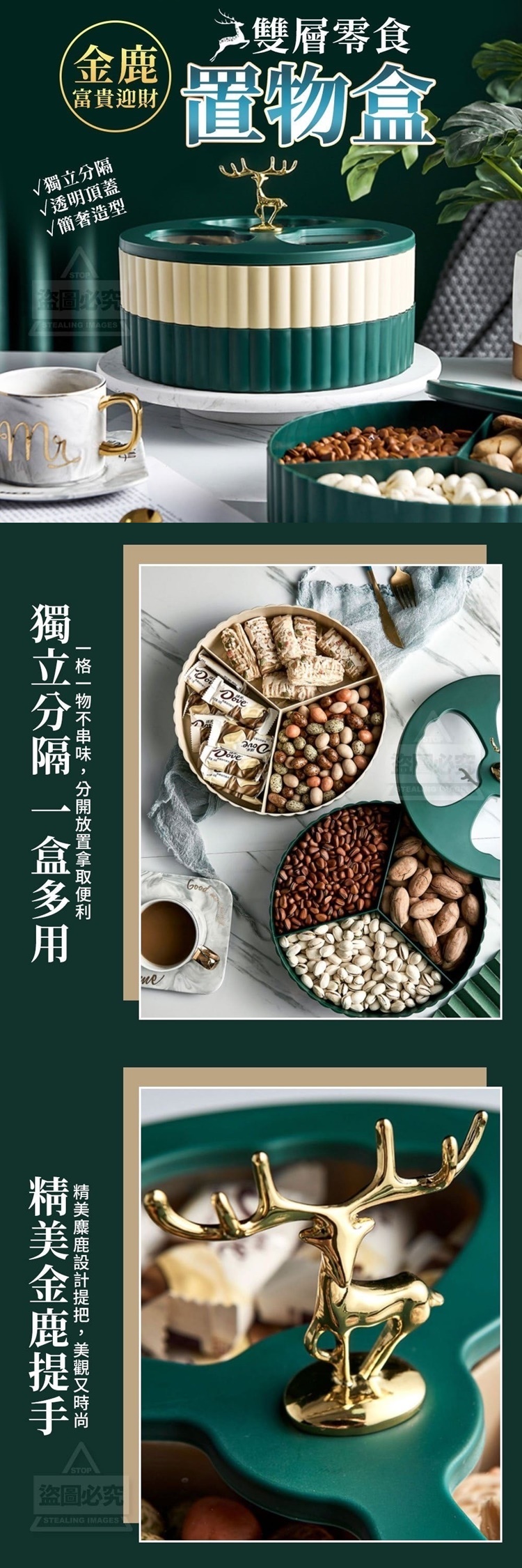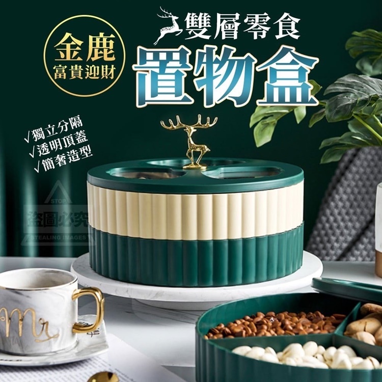 金鹿富貴迎財雙層零食置物盒