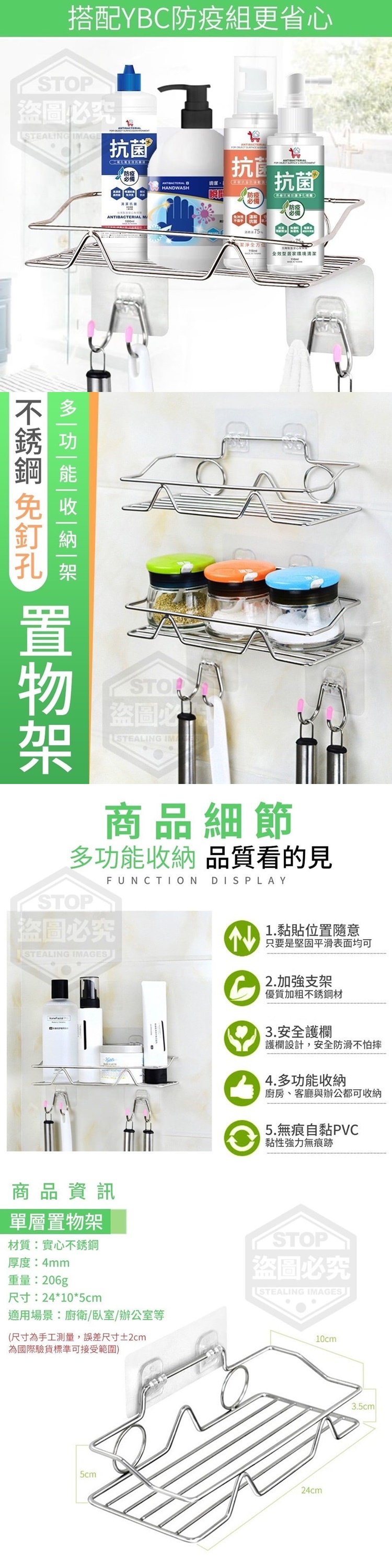 【商品材質】-不銹鋼 【商品尺寸】24*10*5cm (尺寸為手工測量, 誤差尺寸±2cm為國際驗貨標準可接受範圍) 【商品說明】- 瓶瓶罐罐物品總是凌亂還面臨找不到 擁有它,絕對讓您超實用!!! 簡約質感的置物架, 幫助你整理時更有條理 護欄設計,安全防滑不怕摔, 安裝容易, 只要是堅固平滑表面均可輕鬆安裝, 黏性強力撕取無痕跡,優質加粗不銹鋼材, 廚房、客廳與辦公都可收納! 讓居家空間更乾淨清爽, 生活變得美好又便利~