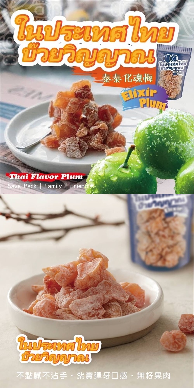 一包是要讓你分給好朋友一起吃 更上一層樓的梅子乾來了~~ 選用最頂級的梅子,直升7星級 好吃再升等 吃了感覺會飄起來,所以叫化魂梅 不會太酸 不會太鹹 不會太甜 被網友評定最好吃的泰國梅子 選定迎賓招待的零嘴 多次獲得大獎的梅子 追劇零嘴,解嘴饞,招待客人,送朋友... 每一口都讓你咬到豐富的梅肉 微微的酸甜口感超止渴 越吃越刷嘴 產地 : 泰國 容量 : 50g