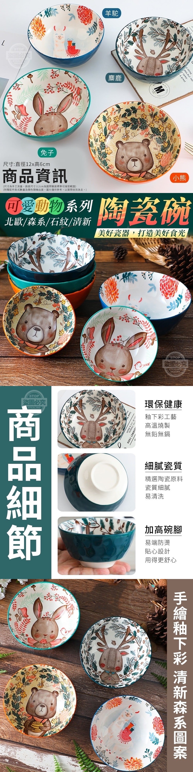 清新可愛的北歐動物系列陶瓷碗