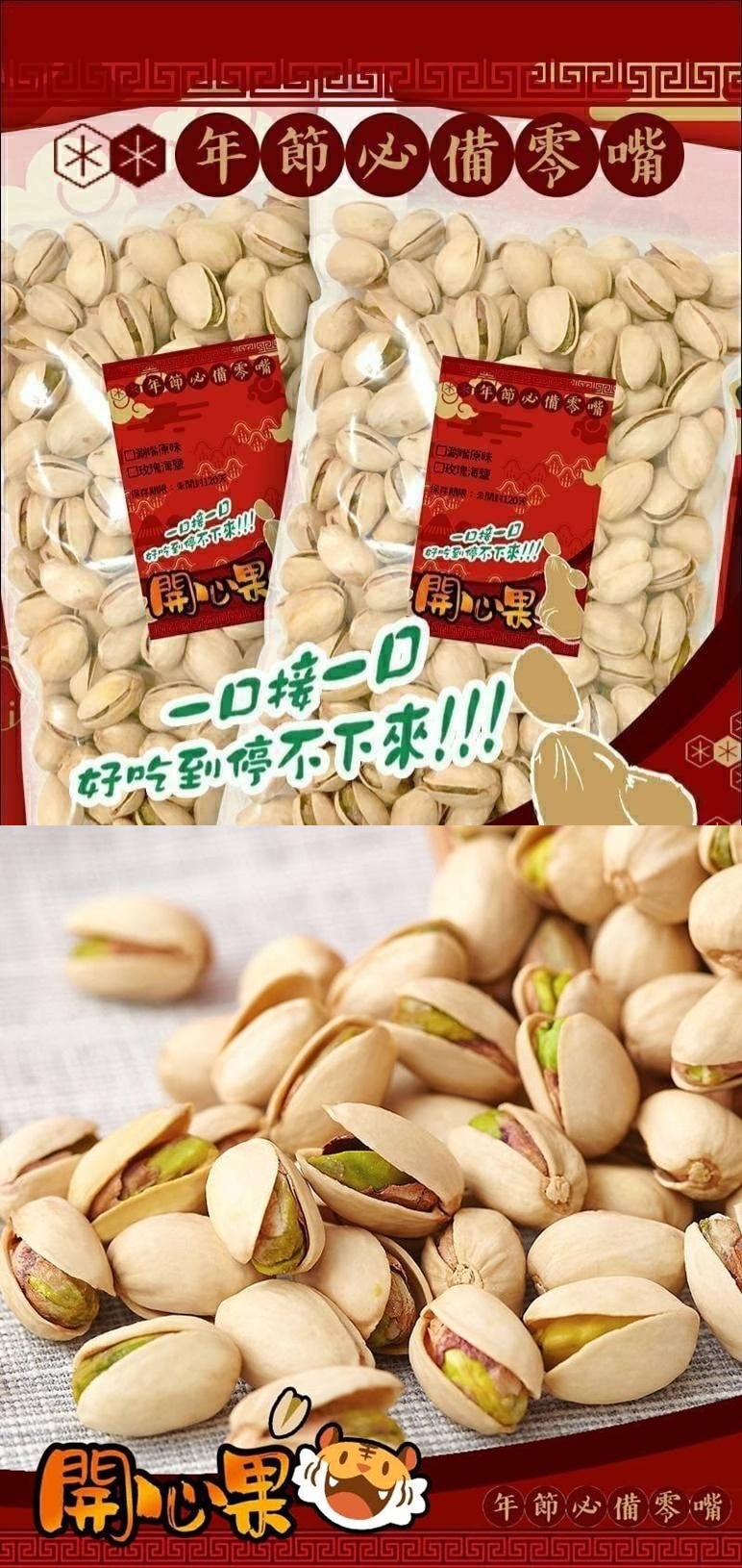 都是下單現炒的喔 買過都說好吃 吃了真的停不下來 回購百分百 過年擺桌上絕對不能缺少的零嘴開心果 客人來到家中,招待開心果 象徵,一見到你就開心 泡茶聊天的好搭檔 我們精挑細選過的 就是不一樣 新鮮的食物不需太多的佐料, 本身鮮甜就是大自然最佳美味 不追求過度的加工 採用伊朗進口的開心果 大顆,果心脆 越吃越涮嘴 停不下來的好吃!!! 重量:260g 口味:涮嘴原味