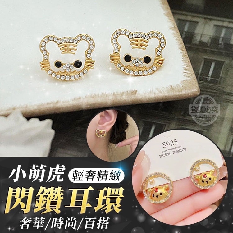 小萌虎輕奢精緻閃鑽耳環