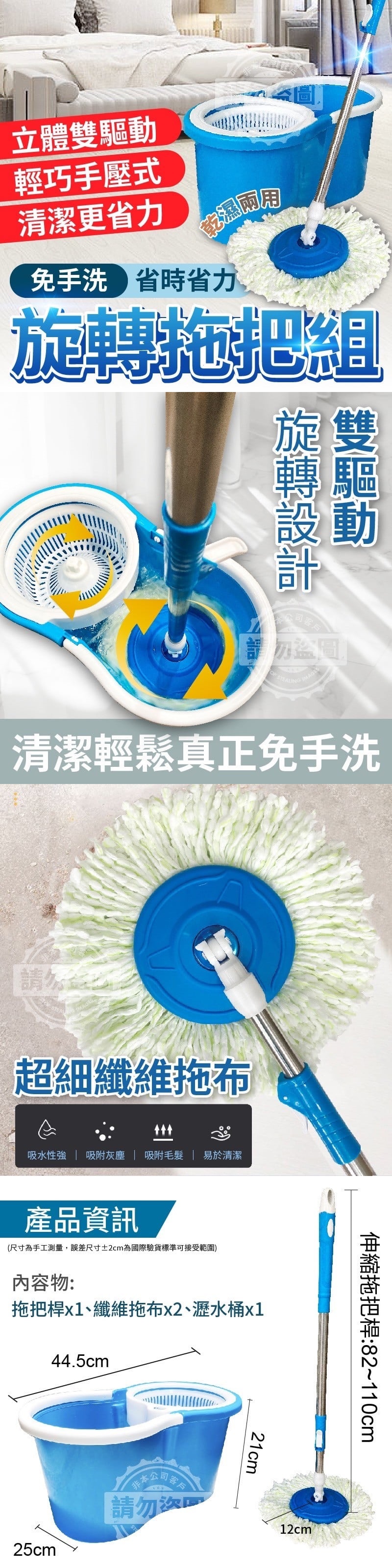 這款『免手洗旋轉拖把組』