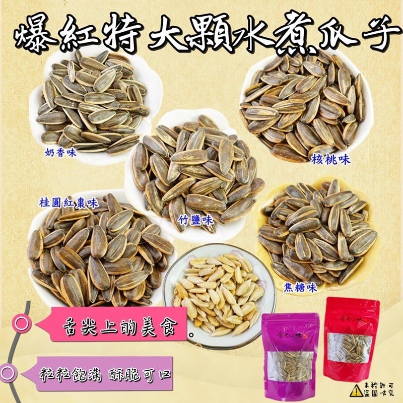 年節訂單比較多,為了避免久候, 請提早送單 香甜酥脆 超夯團購商品 精選向日葵瓜子 以嚴格品管製成, 香香脆脆的瓜子,吃起來香甜可口! 粒粒飽滿的香瓜子,外殼易剝好食用 ! 夾鏈包裝 方便保存喔!! 回購率 #全素 實際出貨數量還是以重量為主唷 實品顏色跟照片會因燈光.顏色. 手機.電腦因素,難免有色差, 請以收到實品為主喔!! 保存方式:拆封後請盡快食用 避免高溫潮濕、陽光直射, 請放置於乾燥陰涼處所 產地: 台灣 賞味期限: 2022/05/16(效期會一直更新)
