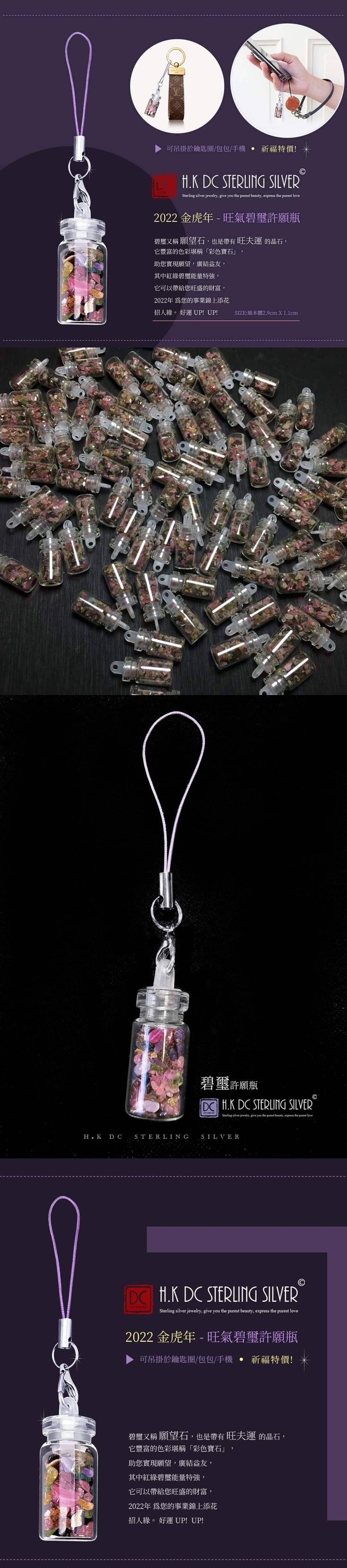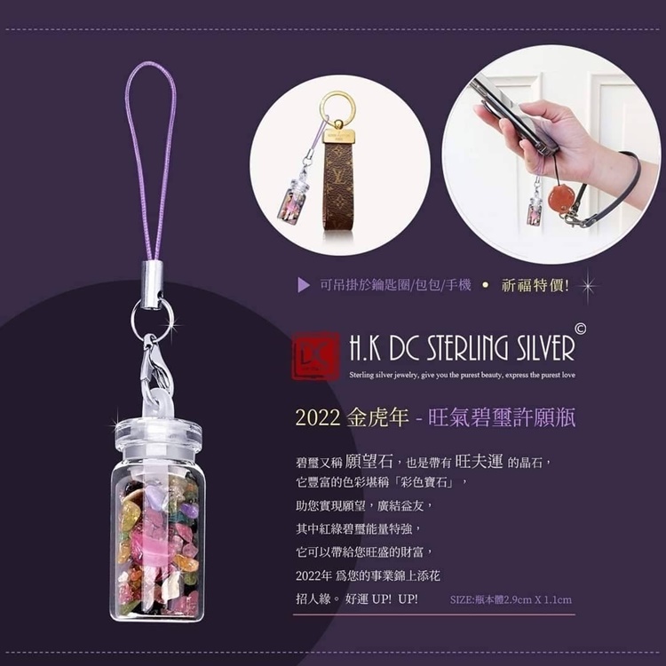 群組的團主 狂敲碗!!!特別請工廠幫忙一檔衝量加開!!!手機吊繩隨機 粉紫/粉色唷!真滴好美唷!2022 金虎年 開運旺氣彩耀碧璽許願瓶小小的, 方便過火完隨身放包包●側面可自行綁上絲帶,也可當吊飾香港H.K DC Sterling Silver <2022 金虎年 >