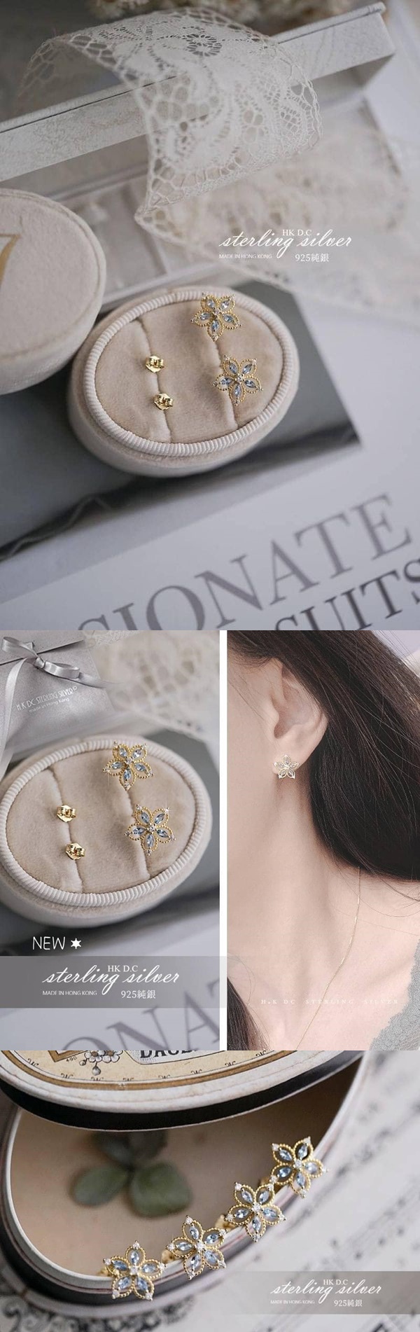 唯美浪漫氣質耳環~H.KDC925純銀鍍18K黃金