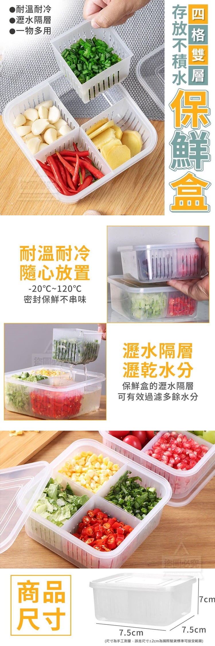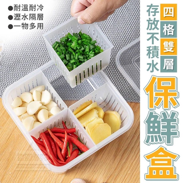 存放不積水四格雙層保鮮盒,