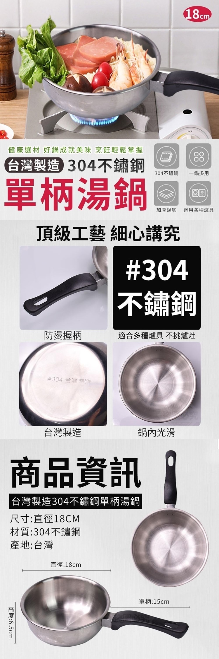 304不鏽鋼單柄湯鍋!讓料理更豐富!