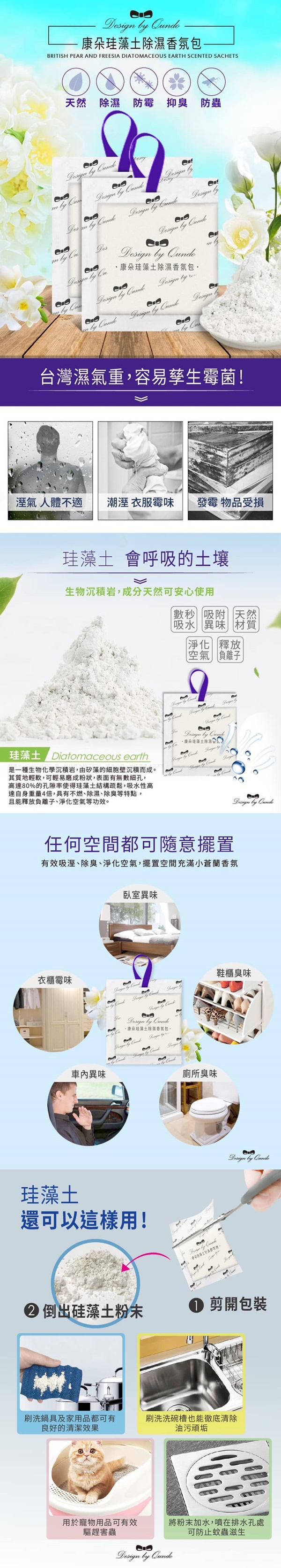 這幾天落大雨,家裡瀰漫著潮濕和霉味嗎 居家防潮必備- 天然硅藻土,成分天然安心使用 吸濕、防霉、除菌、香氛多功能 吊繩設計可以隨意擺置室內空間 國際香氛專家調製精油,散發迷人淡香 硅藻土還可刷洗鍋具油汙, 防止蚊蟲孳生 趕走濕答答,還我清新好空氣~~~