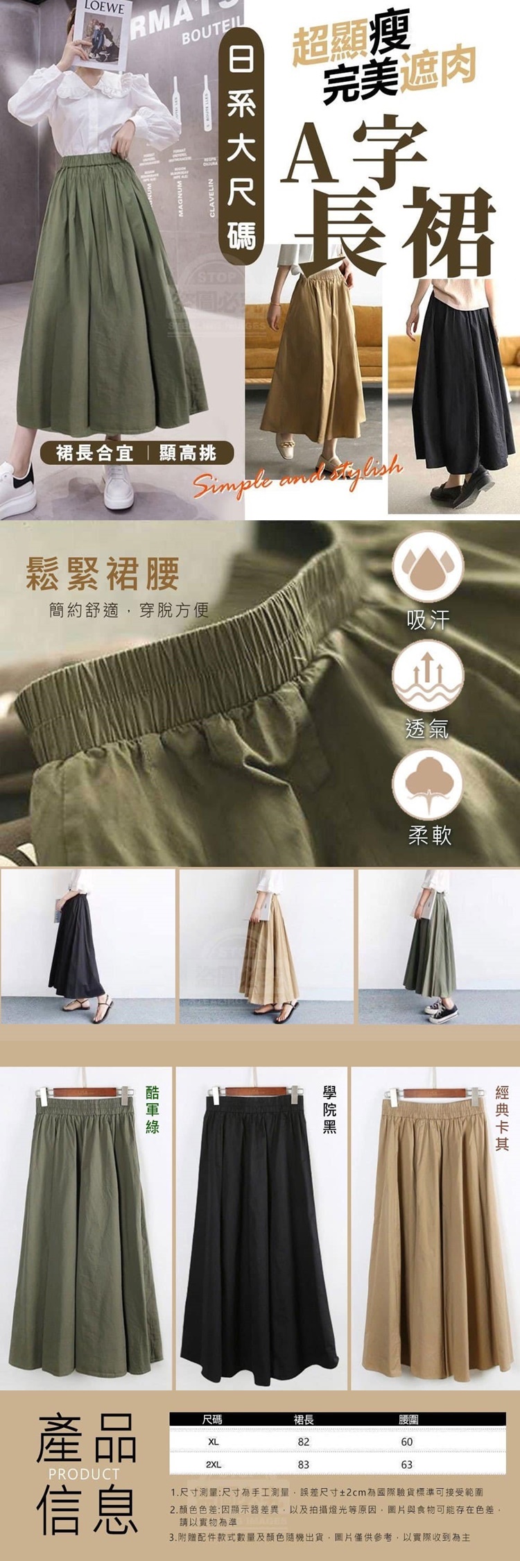 A字傘型裙襬包覆腰肉