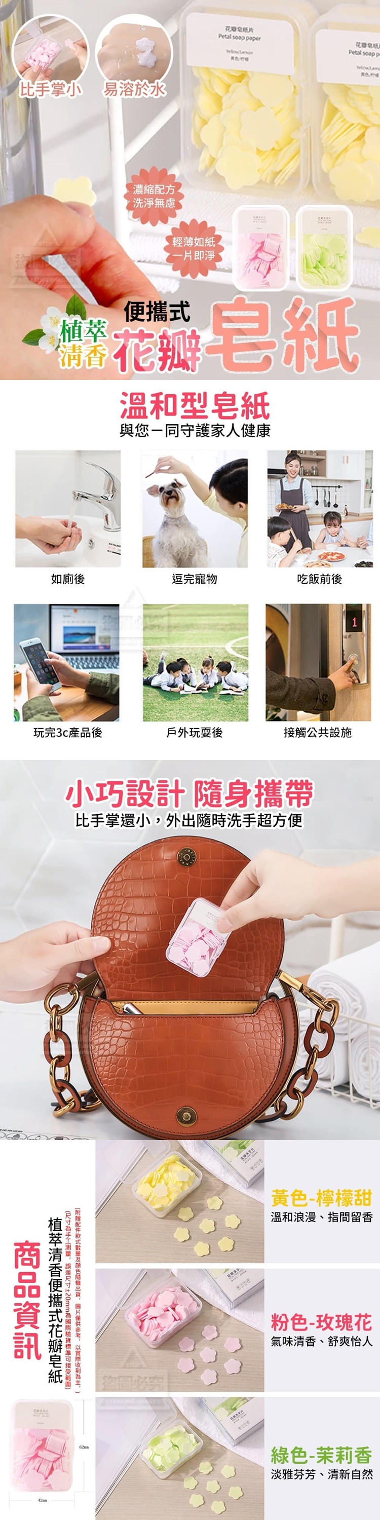 【商品款式】-綠色-茉莉香/黃色-檸檬甜/粉色-玫瑰花【商品尺寸】-62*42mm(尺寸為手工測量,誤差尺寸±20mm為國際驗貨標準可接受範圍)(附贈配件款式數量及顏色隨機出貨,圖片僅供參考,以實際收到為主。)【商品說明】-