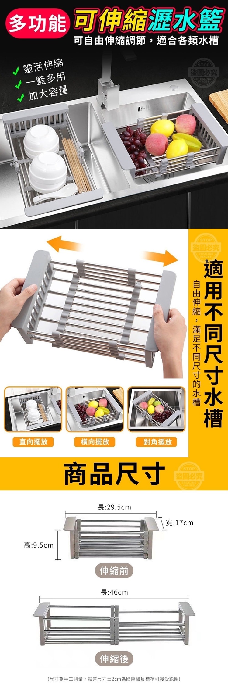能夠調整伸縮、瀝水設計、加大容量