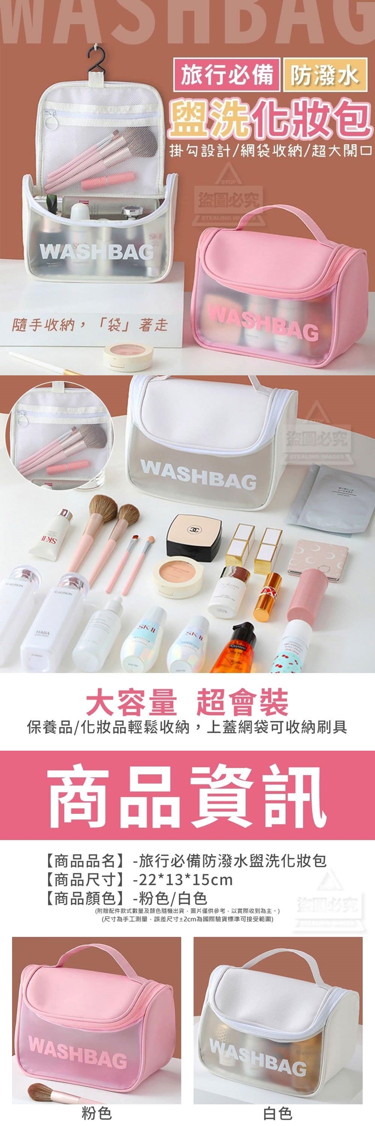 化妝包可懸掛,讓使用更便利