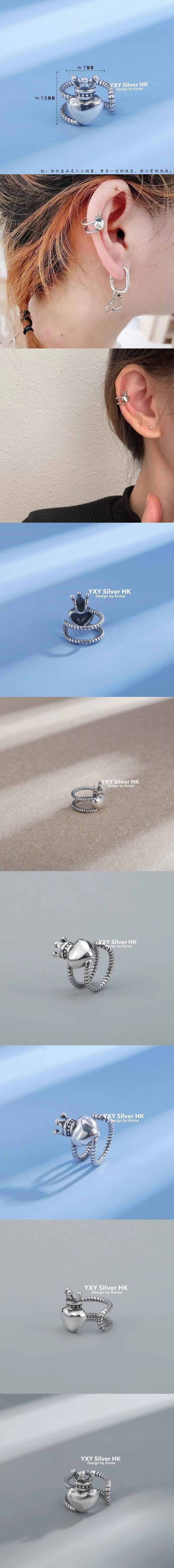 ㊣復古港味做舊U型皇冠愛 心純銀耳夾 此款為單顆價 商品尺寸:標示於圖中 商品顏色:做舊銀 商品材質:S925 Silver 國際標準純銀 商品說明:時尚 大方 個性 氣質 ins網紅潮流耳骨款式