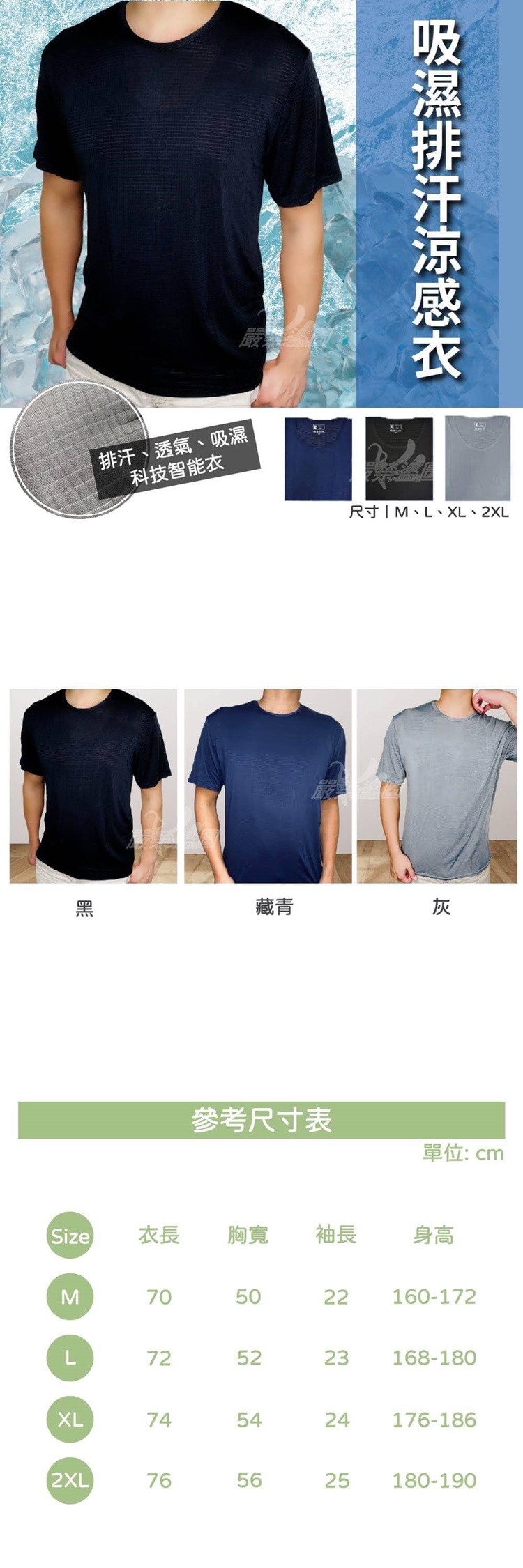 簡單有型挑這一件就對了 趕緊幫老公或男友買買 穿了絕對涼!!!!!! 只有涼沒有用 我們吸濕排汗效果也非常好 不會黏黏的 非常柔軟好穿 簡單三色 黑/藏青/灰(隨機) 包色下去就對了
