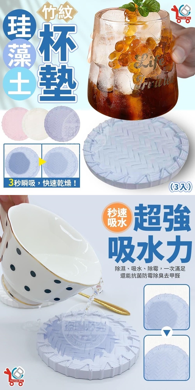 ★使用範圍廣泛★竹紋珪藻土杯墊