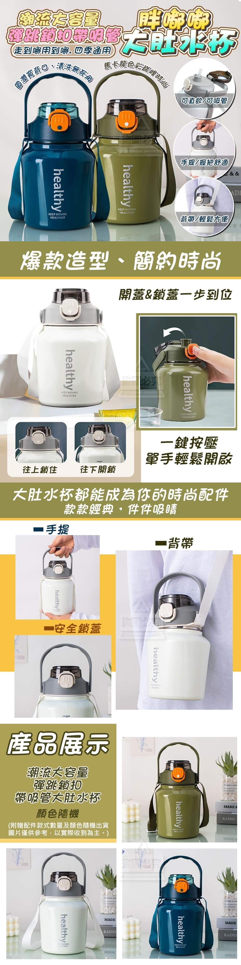 C 潮流大容量彈跳鎖扣帶吸管大肚水杯