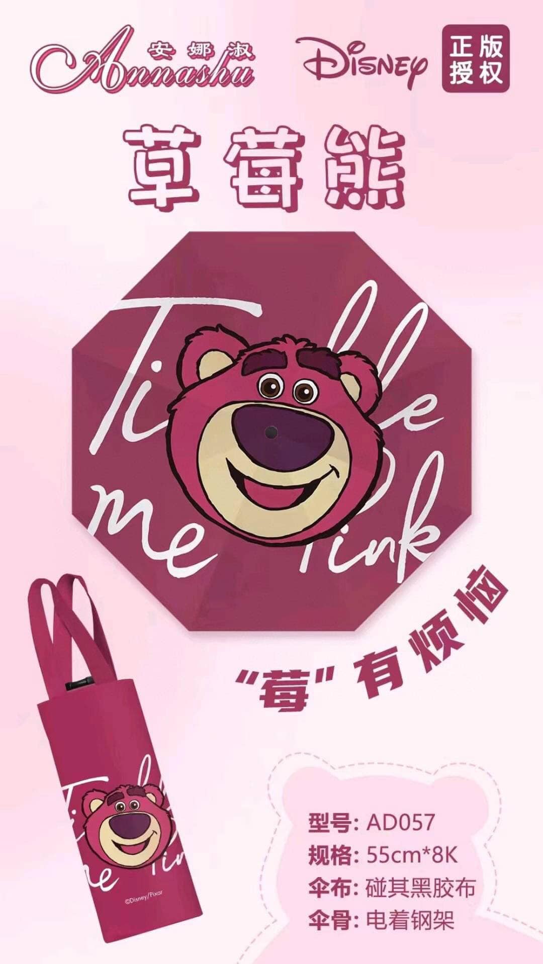 顏色 粉色 桃色 白色(遇缺隨機)迪士尼晴雨傘~可愛的草莓熊熊,無論烈陽還是風雨,都與你相伴。世界很甜,因為有你 # 草莓熊 # 治愈哦~天吶 愛了愛了可可愛愛的草莓熊莓有煩惱愛你的心事在旋轉翻湧搖晃著我真誠熱烈的喜歡是與你追逐奔跑過的青春迪士尼正版授權草莓熊晴雨傘迪士尼官方正版授權的草莓熊晴雨傘迪士尼搶不到的我來安排給你Disney迪士尼最新爆款來襲專櫃夏季新款 折疊晴雨傘新塗層技術深色傘布帶來令人驚喜的遮光效果讓防曬及隔熱性能更優保障傘骨的好壞 決定一把雨傘品質好壞傘架材料由合金傘桿 碳纖維傘骨製成 堅韌度非常強 超美的顏色印刷充斥在傘面的每個地方猶如夜空中的星星般唯美動人搭配設計師精心挑選的色彩大方有時尚 色澤純正艷麗 突顯高貴氣質 滿足你對時尚的所有要求夏天 一把真正可以對抗紫外線的防曬太重要了不是所有太陽傘都可以抵禦紫外線 而且它是晴雨傘 放包裡帶著防雨遮陽真的都很方便晴雨兩用,這樣的傘真的是太方便了!並且我們這個是全遮黑膠布的,99%阻擋紫外線有效隔絕熱量!!#晴雨傘 迪士尼草莓熊系列晴雨傘,每一年春夏季節一到,絕對要給兒童做好防曬,不然容易曬傷嬌嫩肌膚~一按一開,敲及方便呢