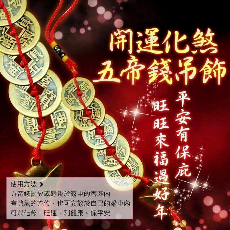 ※五帝錢主為招財、也可化煞,五者為土,土可生金,金者財也,想招財利者,可把五帝錢掛在財位,可達聚財之效