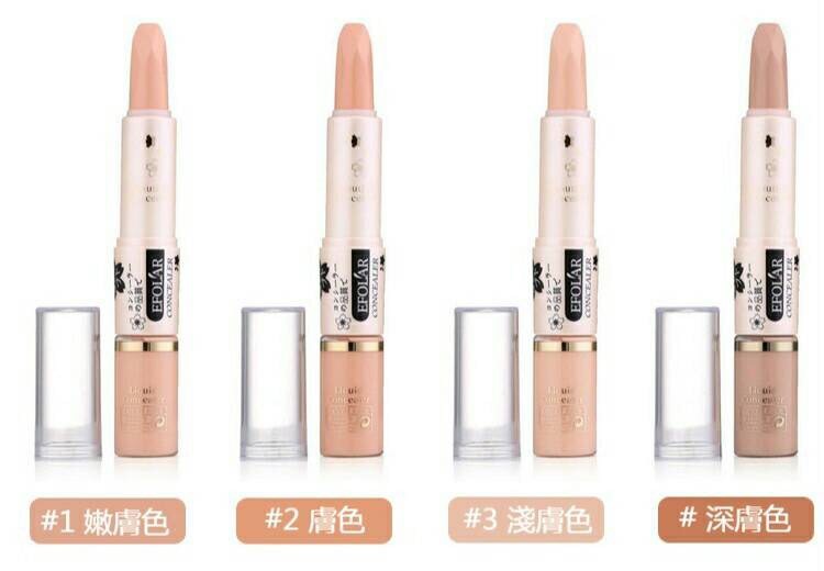 1、用口紅狀遮瑕膏,點塗在黑眼圈、色斑等瑕疵處